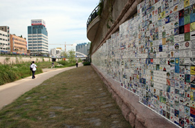 시민 2만여명이 자신들의 소망과 염원을 직접 쓰고 그려 넣은 타일을 모아 황학교와 비우당교 구간 좌우 옹벽에 각각 높이 2.2m 길이 50m로 조성한 곳. 개성 있는 글과 그림이 가득 담겨 있다.