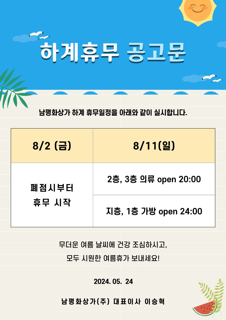 2024 남평화상가 여름휴가 안내입니다.
